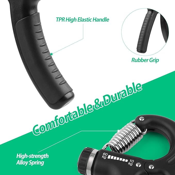 6 مستويات مقاومة قابلة للتعديل من 10 لحد 60 كجم حسب شدة التمرين اللي عايزها وعشان تزود تدريجي وتصنع قبضة من حديد
